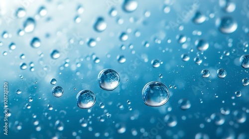 Close-up macro photo of water drops or oil bubbles on blue background.