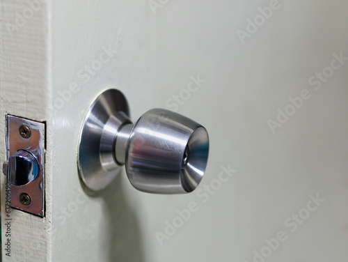 Close-up Metallic Door Knob on Wooden Door