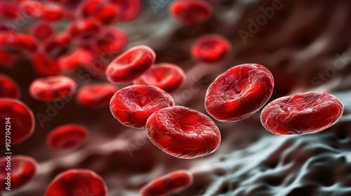 Close-up Microscopic View of Red Blood Cells Floating in a Stream, Representing the Vital Role of Oxygen Transport in the Human Body