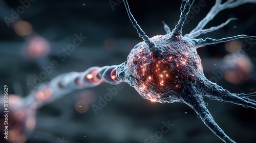 Close-Up Neural Cell Network with Glowing Synapse, Futuristic Brain Connection Visualization, 3D Scientific Rendering of Neurons, Artificial Intelligence and Biology Concept, 32k resolution