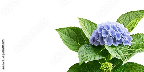 Close-up of a blue Hydrangea flower blooming against a clear white background for botanical concepts
