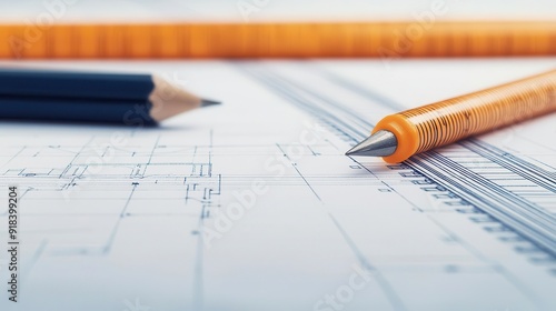 Closeup of a blueprint with focus on railway track alignment, civil engineering drafting