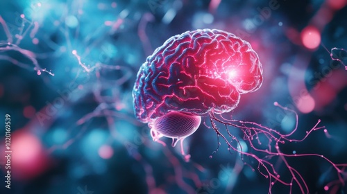 Close-up of a braina??s motor cortex in 3D, with nerve connections highlighted.