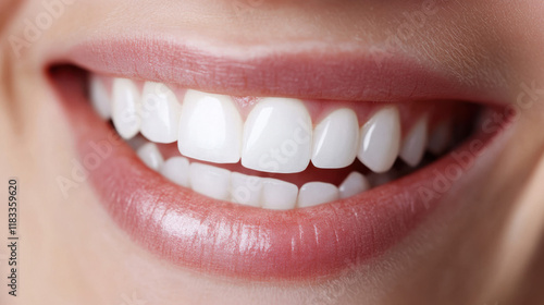 Close-up of a Bright and Healthy Smile Showcasing Perfectly Aligned White Teeth and Soft Lips Radiating Confidence and Care in Oral Hygiene