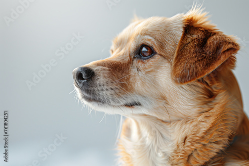 Closeup of a brown dog on a grey background