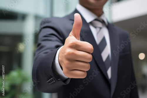Close-up of a businessman giving a thumbs up
