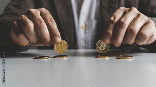 Close-up of a businessman holding a coin, symbolizing finance, accounting
