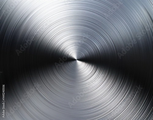 Close-up of a circular brushed metal surface with concentric ridges and shiny reflective texture, creating a sense of depth and industrial precision