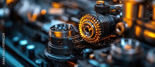 Close-up of a complex mechanical system with intricate gears and metallic components, highlighting the precision and complexity of industrial machinery.