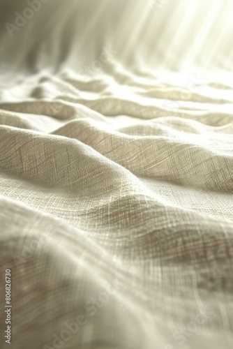 Close-up of a crumpled beige linen fabric texture with a soft focus