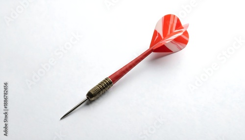 Close-up of a dart with a red and white flight.