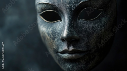 Close-up of a Detailed Gray Venetian Mask on Dark Background