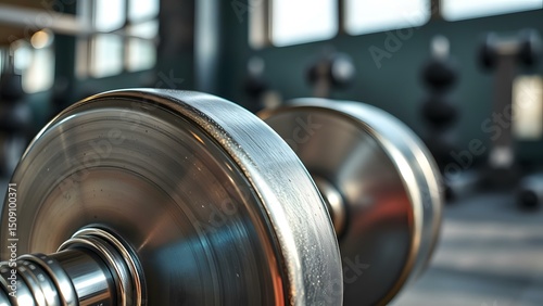 Close-up of a dumbbell in a fitness environment highlighting strength training and workout motivation.