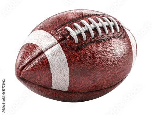 Close-up of a football, showing leather texture and stitching