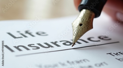 Close-up of a fountain pen on a life insurance document