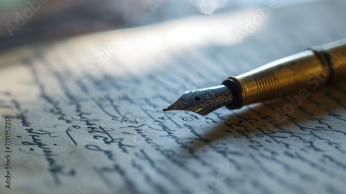 Close-up of a fountain pen on handwritten notes