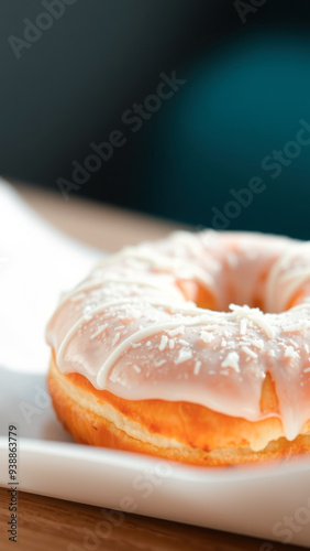 Close-up of a Glazed Donut with White Icing and Sprinkles