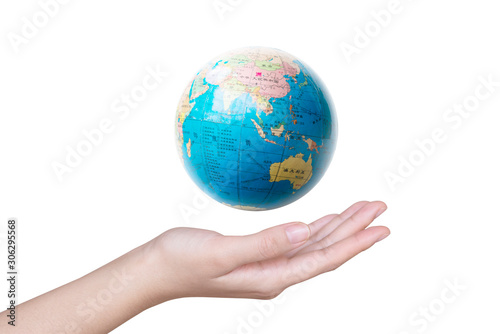 Close-up of a hand holding a globe.
