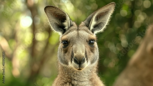 Close-up of a kangaroo's face, highlighting its expressive eyes and soft fur, set against a natural background