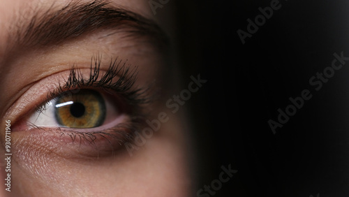 Close-Up Of A Large, Blinking Girl'S Eye On A Black Background