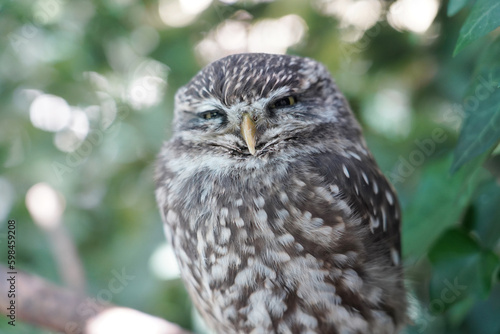 Close-up of a Little Owl sitting on the branch