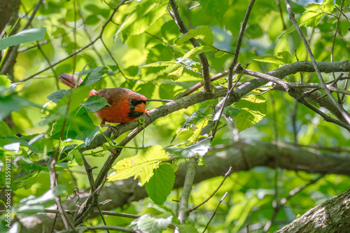 Closeup of a male northern cardinal.