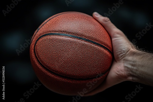 Close-up of a Man's Hand Holding a Basketball Against a Dark Background