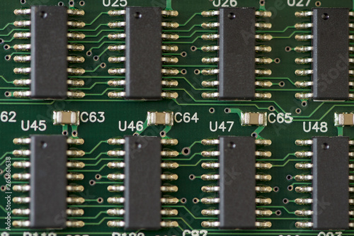Close-up of a motherboard. Circuit with electronic components