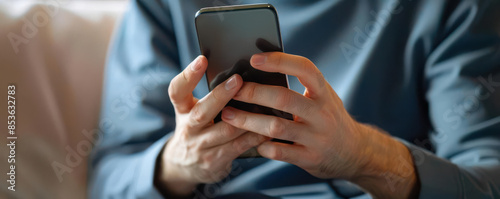 Closeup of a person using a smartphone for work tasks, home environment