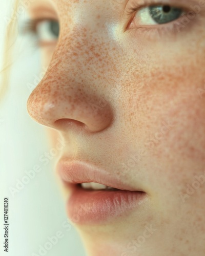 Close-up of a person's face with visible skin texture, showcasing natural imperfections and healthy glow, representing authenticity and self-confidence in beauty.