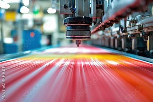 Close-up of a Printing Press with Red and Yellow Ink Lines