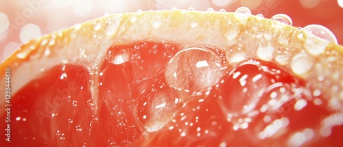 Close-up of a Red Grapefruit Slice with Water Droplets