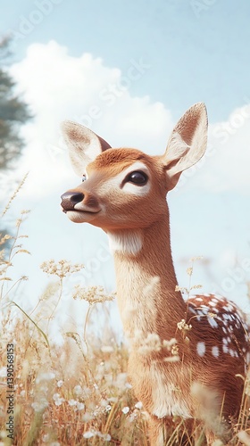 Closeup of a sika deer on a meadow in the wild