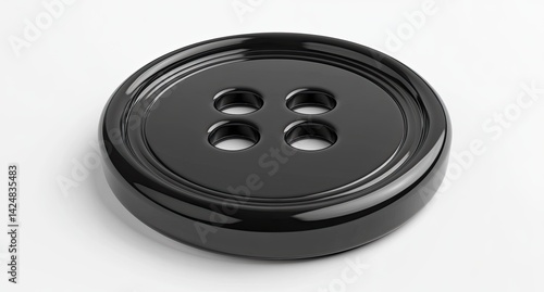 Close-up of a single, black, four-hole button.