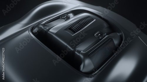 Close-up of a sleek, futuristic black technology component showcasing advanced design.