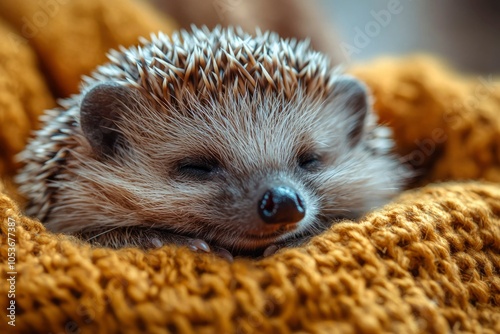 Close-Up of a Sleeping Hedgehog Nestled in a Knitted Blanket