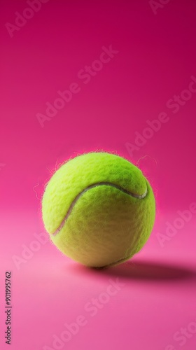 Close-up of a tennis ball on a pink background, sports equipment concept