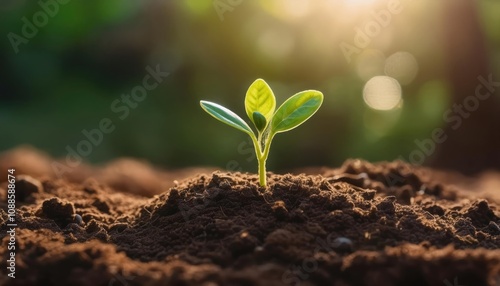 Close-up of a tiny seedling sprouting from the soil, representing growth, potential, and transformation