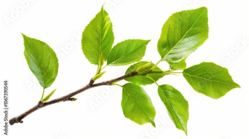 Close-up of a Tree Branch with Fresh Green Leaves