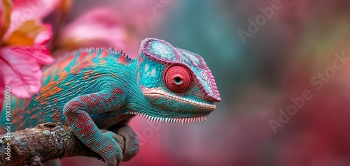 Closeup of a vibrant chameleon