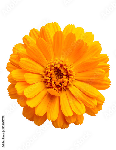 Close-up of a vibrant, fully bloomed flower with layers of orange petals against black