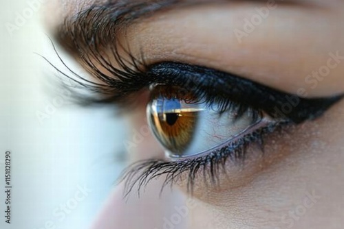 Close-up of a Woman's Eye with Brown Iris and Black Eyeliner