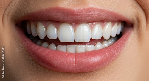 Closeup of a womans perfect smile with healthy white teeth, showcasing dental health and beauty, oral hygiene