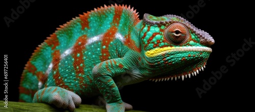 closeup of amazing chameleon on black background.