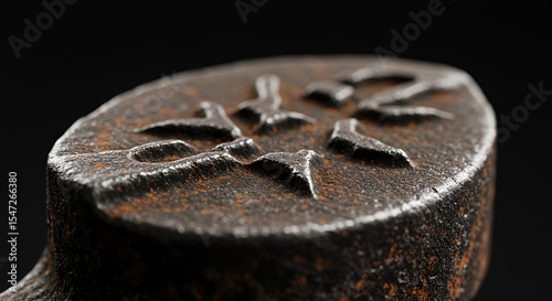 Close-up of an Ancient, Rusted Metal Seal with Intricate Carvings