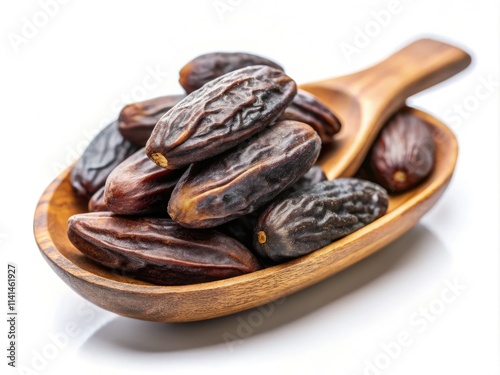 Close-up of aromatic tonka beans, their rich scent captured in wood.