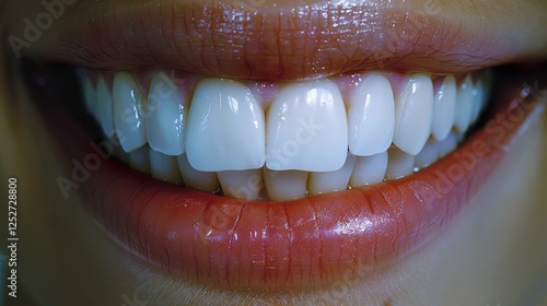 Closeup Of Beautiful Smile With White Teeth. Woman Mouth Smiling. High Resolution Image