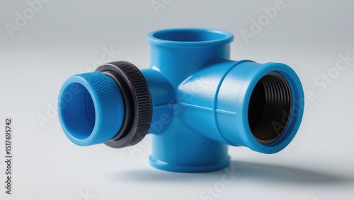 Close-up of black plastic 90 degree piping elbow isolated on white background