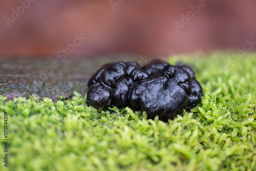 close-up of black witches butter on moss at the veluwezoom