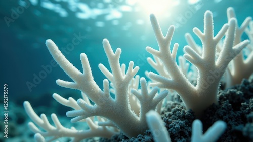 Close-up of bleached coral underwater showing effects of climate change and ocean warming